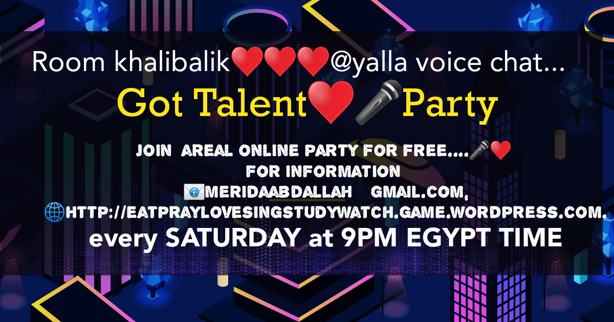 عندك موهبة ♥️#بتغني♥️ مستنينكم في مسابقة عندي موهبة ♥️ اول مسابقة وحفل #الكتروني #توماتيكي😁 اعرف اكتر عن مسابقة الغناء و ابعت رسالة هنا أو علق بتم وقول لأصحابك اهلا بيكم …انا🎤https://www.facebook.com/merida.brave.37819message with avoice record of any song you love ♥️♥️♥️.او زوروا موقعنا ع : http://eatpraylovesingstudywatch.game