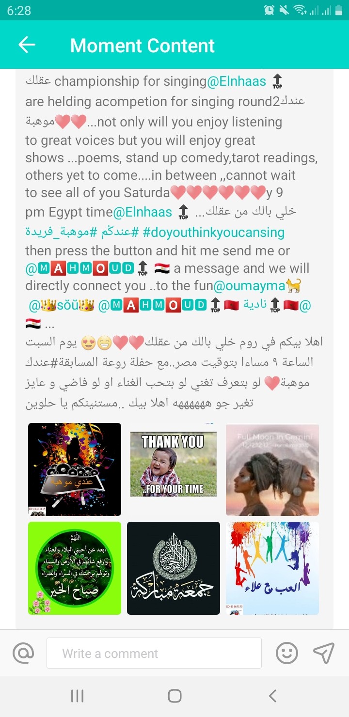 ♥️♥️joined ♥️عندك موهبة واتعرف علي ناس كتير موهوبين وبيعرف كمان يعزفوا ويغنوا♥️♥️موهوبين وبيعرف كمان يعزفوا ويغنوا♥️♥️♥️ مستنينكم♥️ اعرف اكتر عن مسابقة الغناء والعزف واضغط ع